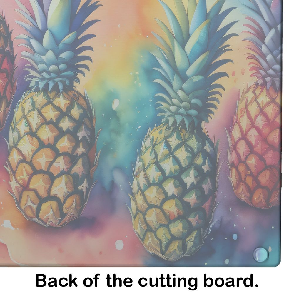Glass Cutting Board featuring breed specific Pineapples artwork. Introduce your kitchen to the vibrant, large Decorative Glass Cutting Board from Caroline's Treasures. Crafted from resilient tempered glass, this board is not only a utilitarian necessity but also a colorful art piece. With its generous dimensions of 15 inches in height and 12 inches in length, it offers ample space for all your cutting needs. Every piece showcases captivating artwork from distinguished artists, bringing an aesthetic edge to your kitchen. Beyond its attractive design, this cutting board ensures your countertop stays pristine and unscathed, owing to its heat-resistant properties. Engineered with user convenience in mind, it features non-skid feet for stability, and rounded corners for additional safety. Its robust construction renders it virtually unbreakable, guaranteeing longevity. The board comes with protective feet bumpers, maintaining its position during use. This product is recommended to be hand washed only. Proudly printed and assembled in the United States, this cutting board exemplifies superior craftsmanship. With Caroline's Treasures' Decorative Glass Cutting Board, you're investing in a blend of functionality and artistic flair.