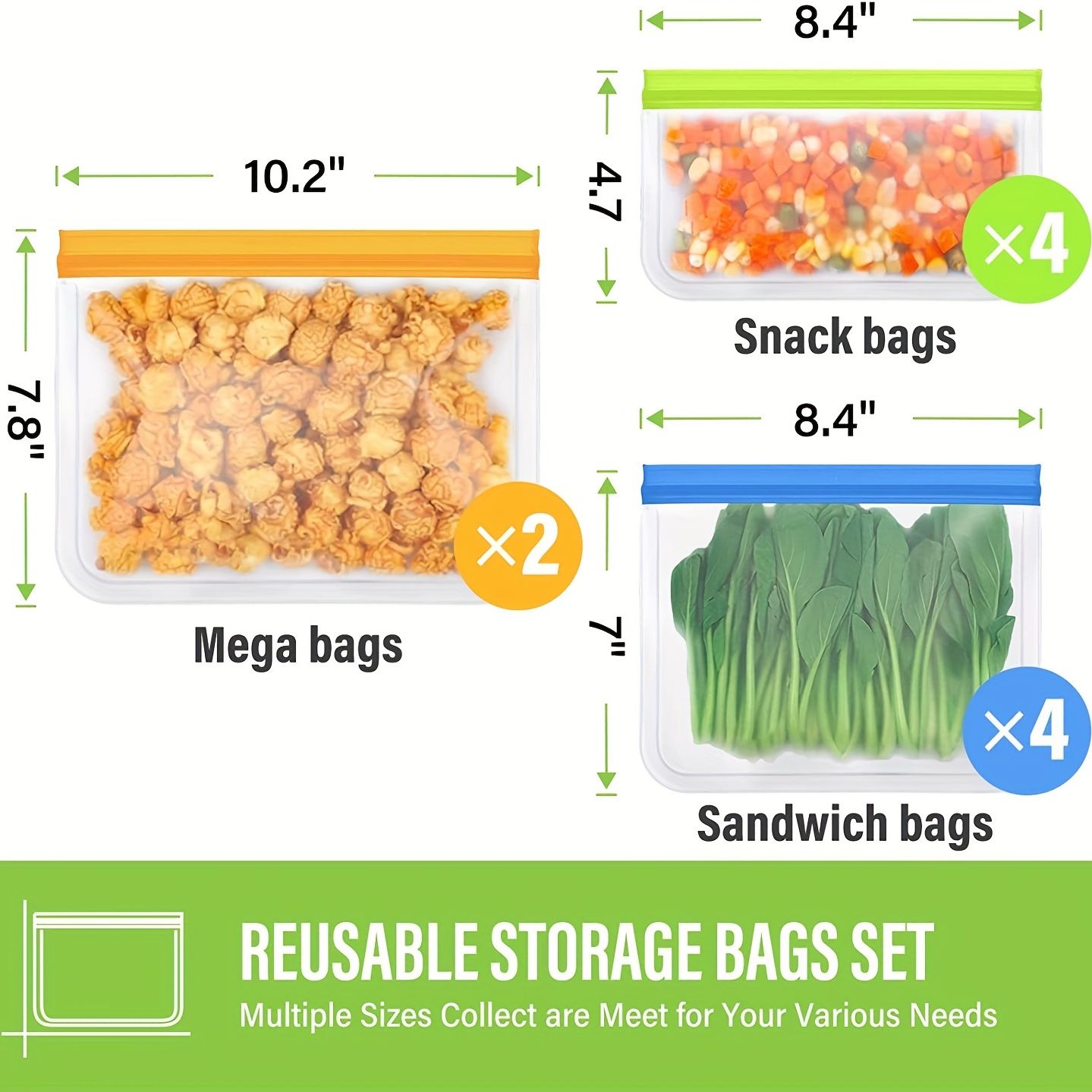 10pcs Reusable Food Storage Bags; BPA Free Flat Reusable Freezer Bags; Snack/Sandwich Bags Food Grade; Leakproof Storage Bags For Lunch; Marinate; Kee