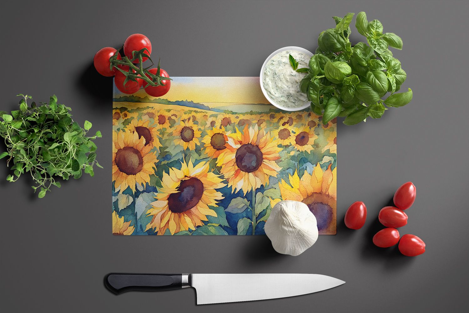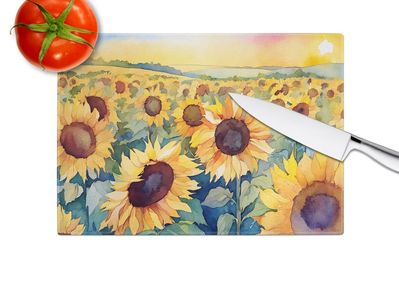 Home > NEW Kansas Sunflowers in Watercolor Glass Cutting Board Decorative Tempered Glass Kitchen Cutting and Serving Board Large Size Chopping Board