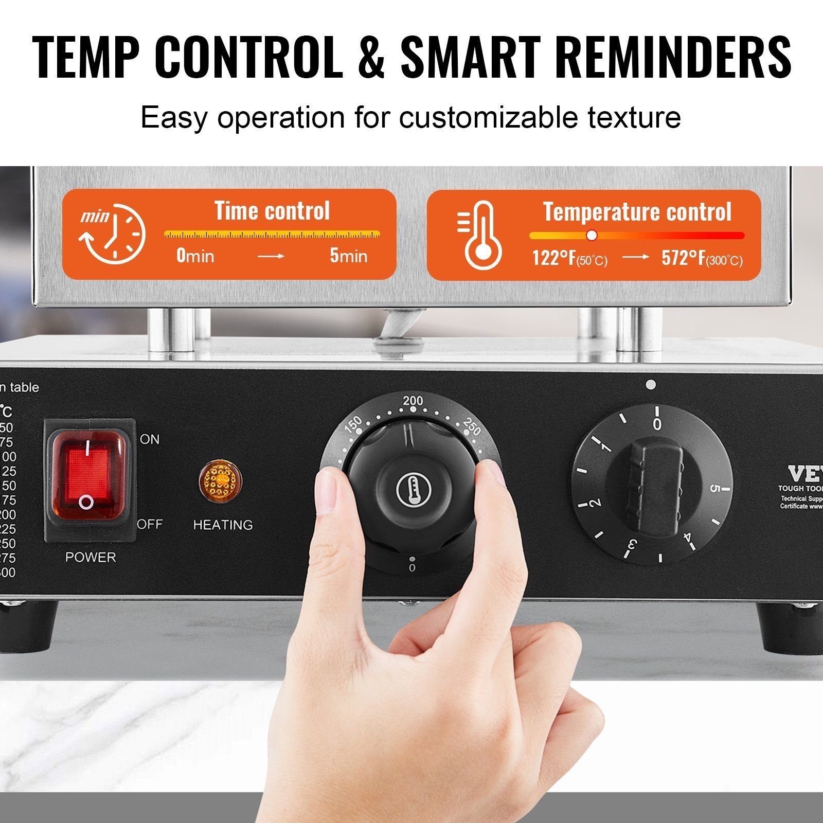2.Precision Temperature Control: This dorayaki baker machine is designed with a temperature control knob (122-572°F / 50-300°C), allowing you to adjust according to your preferences. Customize it to create personalized waffles, whether you prefer them crispy or fluffy. With individual preparation and audible alerts, it's easy to operate-it reminds you to add batter and indicates when the waffle is cooked, so you don't have to watch it constantly.