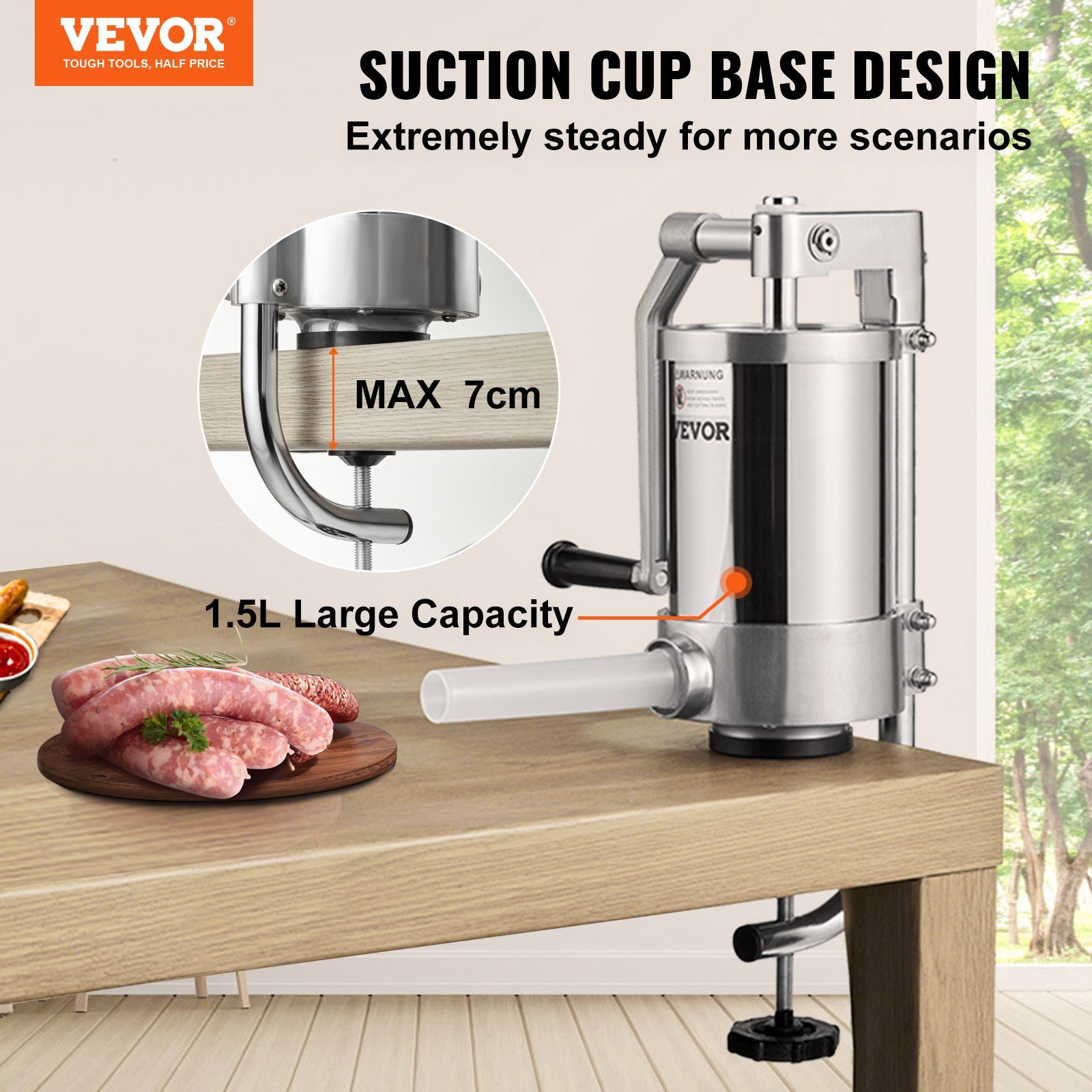 Home > VEVOR Sausage Stuffer 2.5LBS/1.5L Capacity Homemade Sausage Maker Stainless Steel