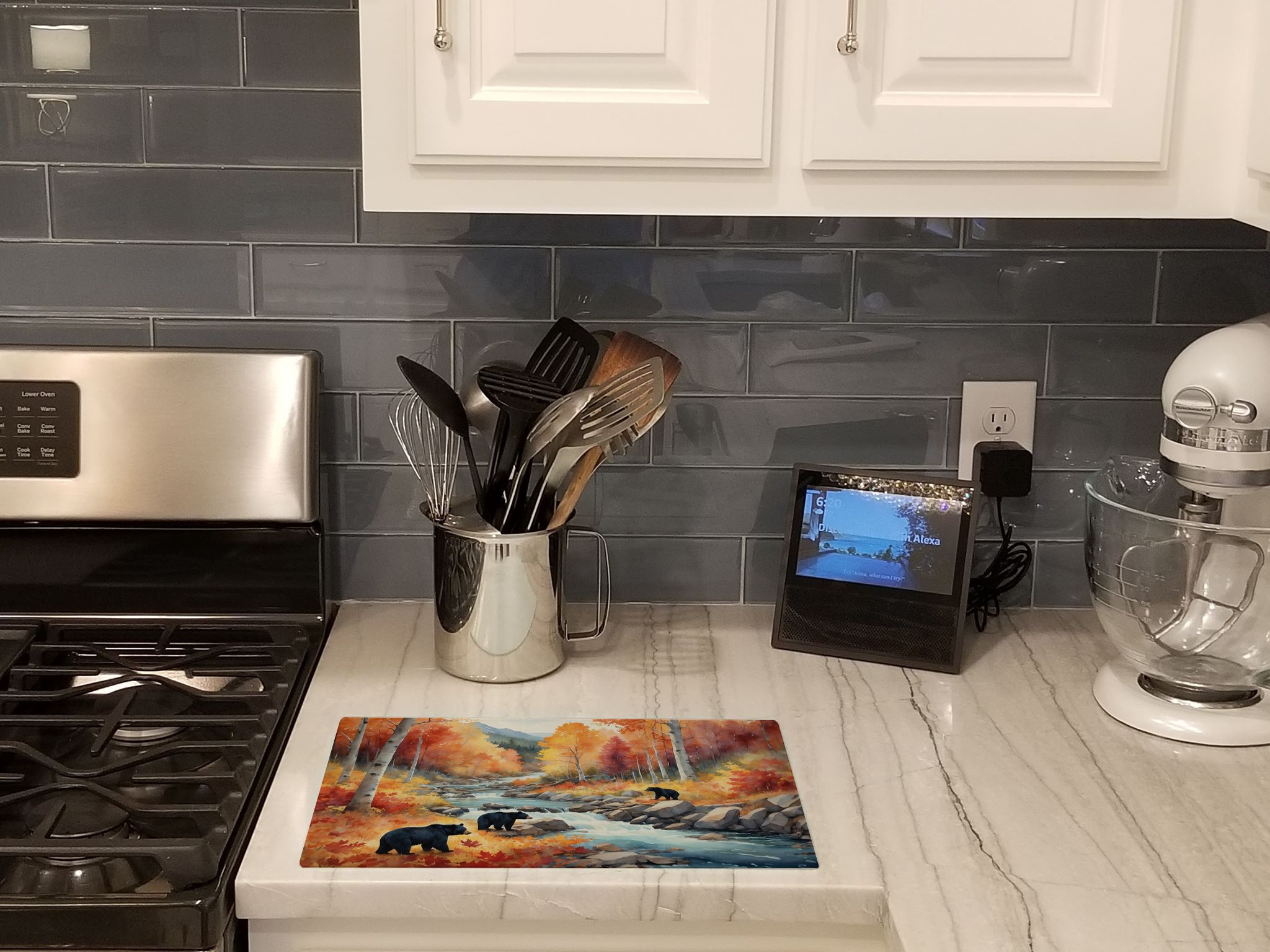 Home > Bears Autumn in the Woods Glass Cutting Board Decorative Tempered Glass Kitchen Cutting and Serving Board Large Size Chopping Board