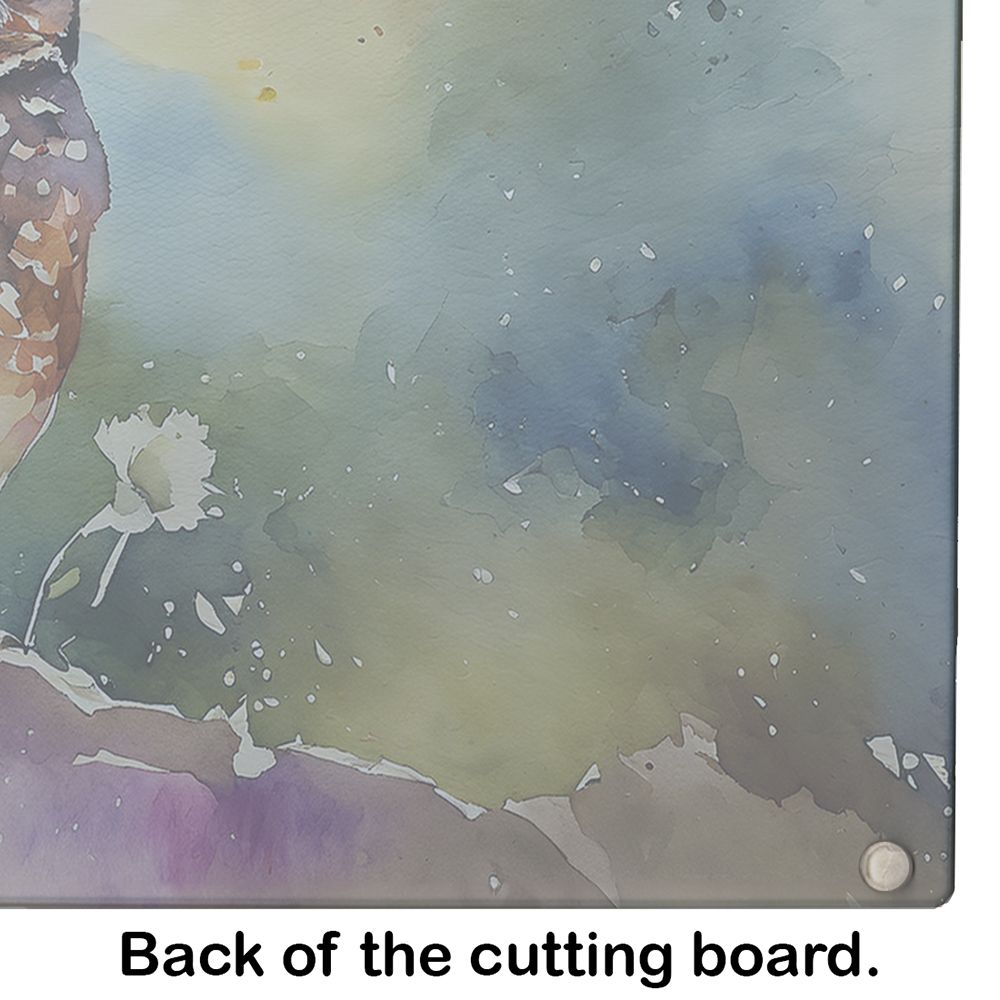 Glass Cutting Board featuring breed specific Burrowing Owl artwork. Introduce your kitchen to the vibrant, large Decorative Glass Cutting Board from Caroline's Treasures. Crafted from resilient tempered glass, this board is not only a utilitarian necessity but also a colorful art piece. With its generous dimensions of 15 inches in height and 12 inches in length, it offers ample space for all your cutting needs. Every piece showcases captivating artwork from distinguished artists, bringing an aesthetic edge to your kitchen. Beyond its attractive design, this cutting board ensures your countertop stays pristine and unscathed, owing to its heat-resistant properties. Engineered with user convenience in mind, it features non-skid feet for stability, and rounded corners for additional safety. Its robust construction renders it virtually unbreakable, guaranteeing longevity. The board comes with protective feet bumpers, maintaining its position during use. This product is recommended to be hand washed only. Proudly printed and assembled in the United States, this cutting board exemplifies superior craftsmanship. With Caroline's Treasures' Decorative Glass Cutting Board, you're investing in a blend of functionality and artistic flair.