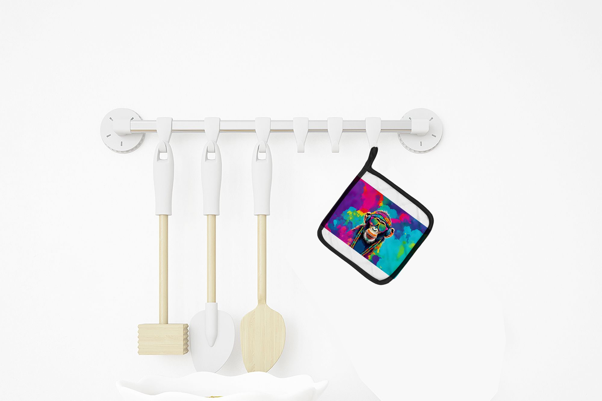 NEW Hippie Animal Chimpanzee Pair of Pot Holders Kitchen Heat Resistant Pot Holders Sets Oven Hot Pads for Cooking Baking BBQ, 7 1/2 x 7 1/2