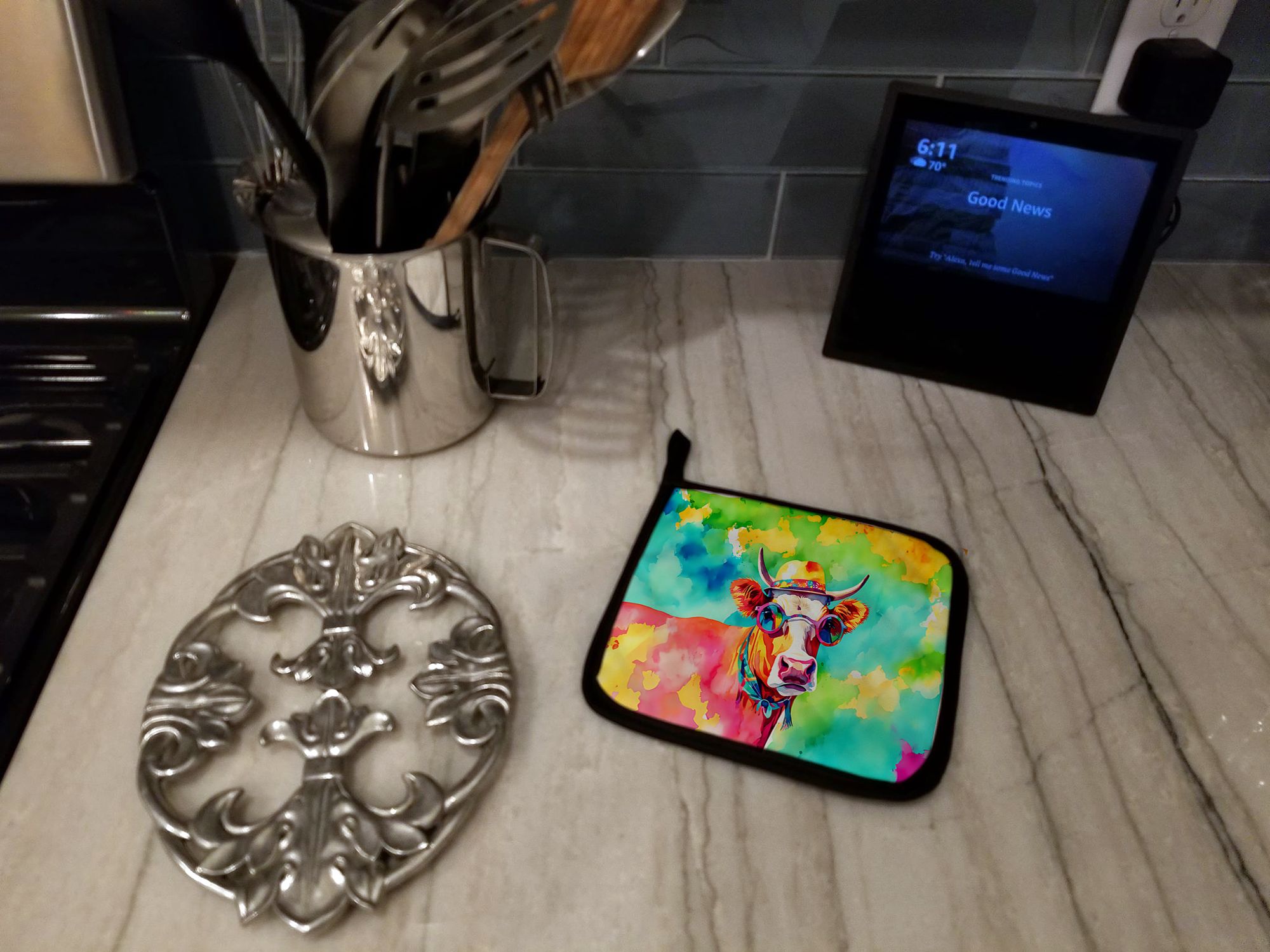 NEW Hippie Animal Malvi Cow Pair of Pot Holders Kitchen Heat Resistant Pot Holders Sets Oven Hot Pads for Cooking Baking BBQ, 7 1/2 x 7 1/2