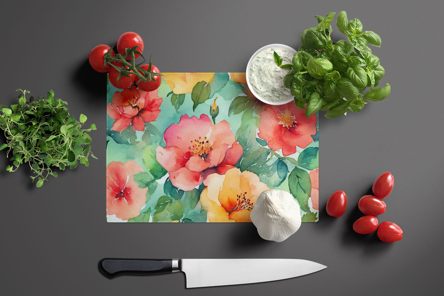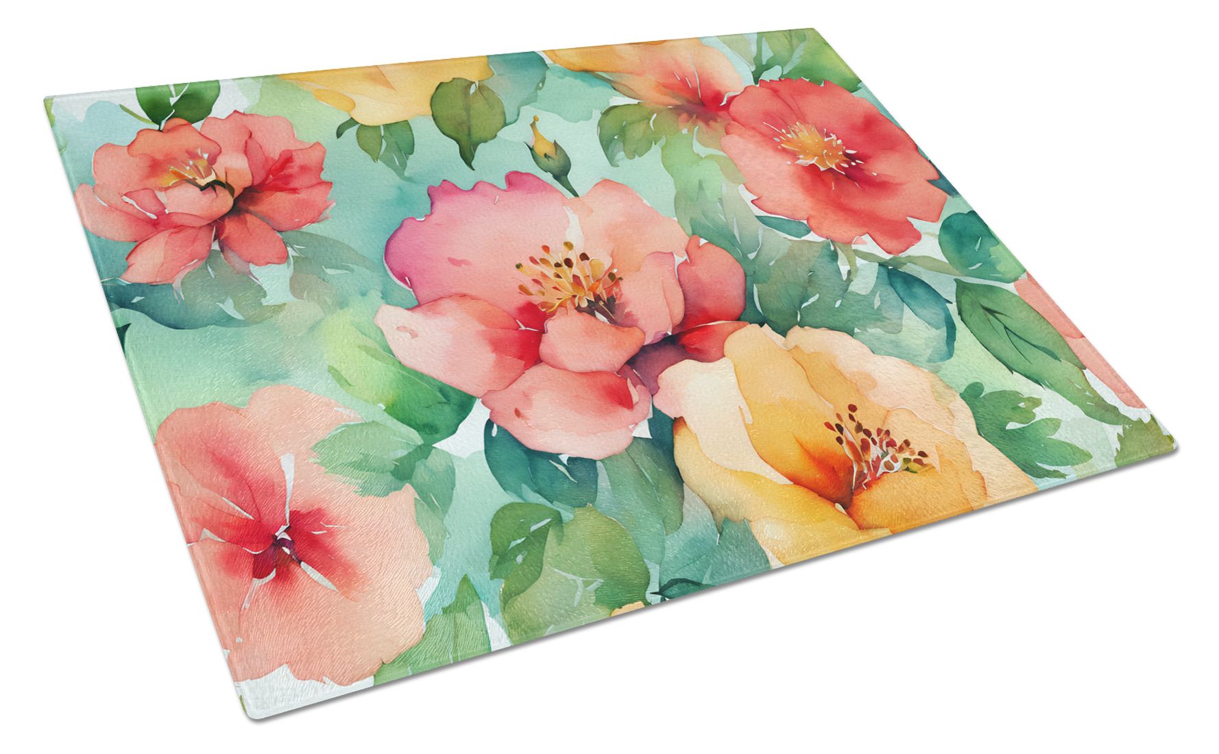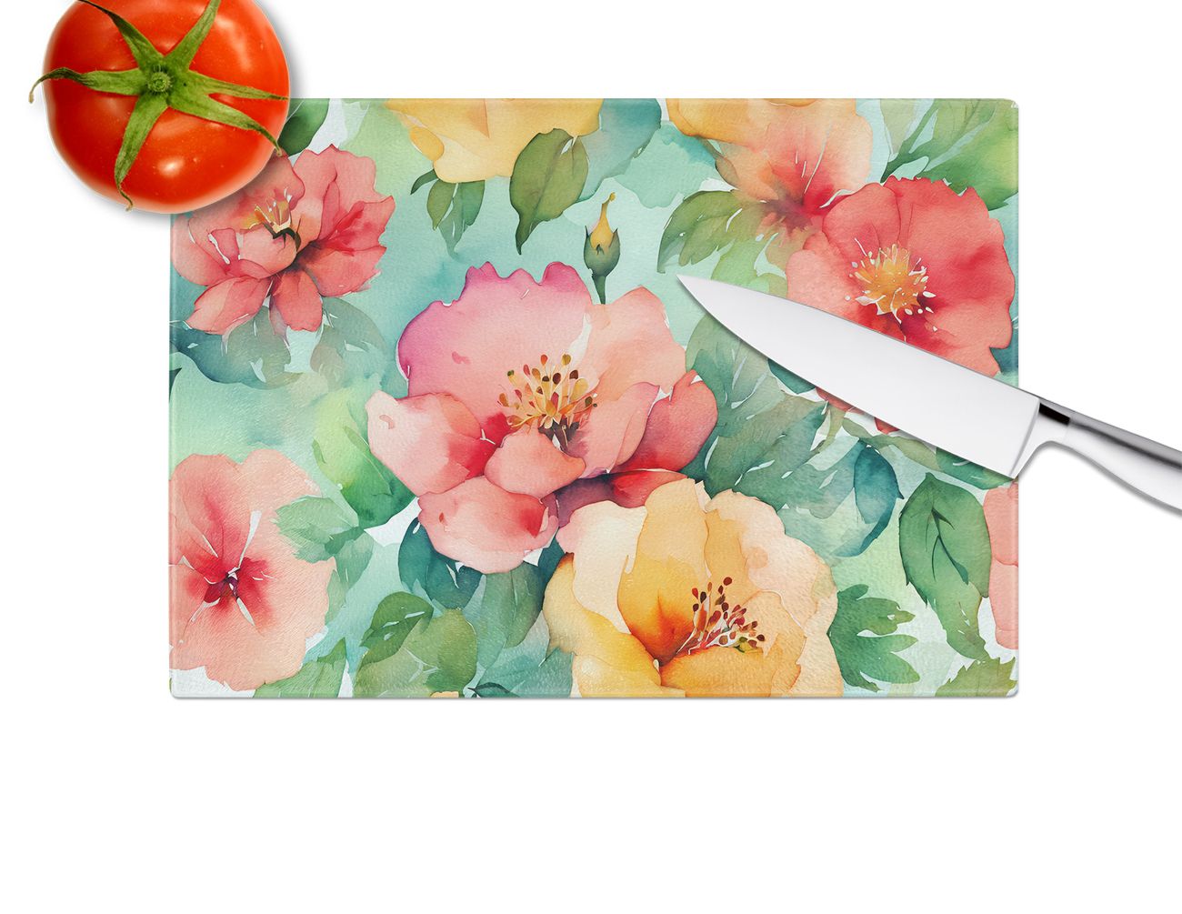 NEW Georgia Cherokee Rose in Watercolor Glass Cutting Board Decorative Tempered Glass Kitchen Cutting and Serving Board Large Size Chopping Board
