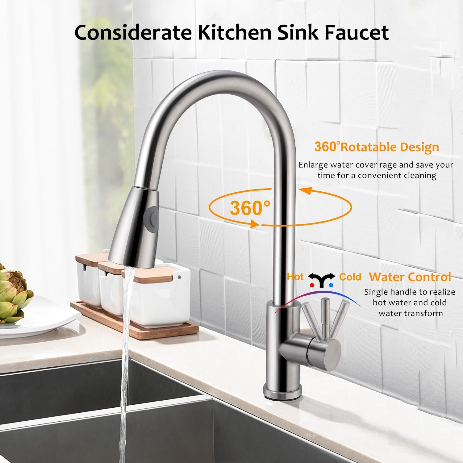 Home > Kitchen Faucets Single Handle Kitchen Sink Faucet Brushed Nickel Stainless Steel Pulldown Head Faucet