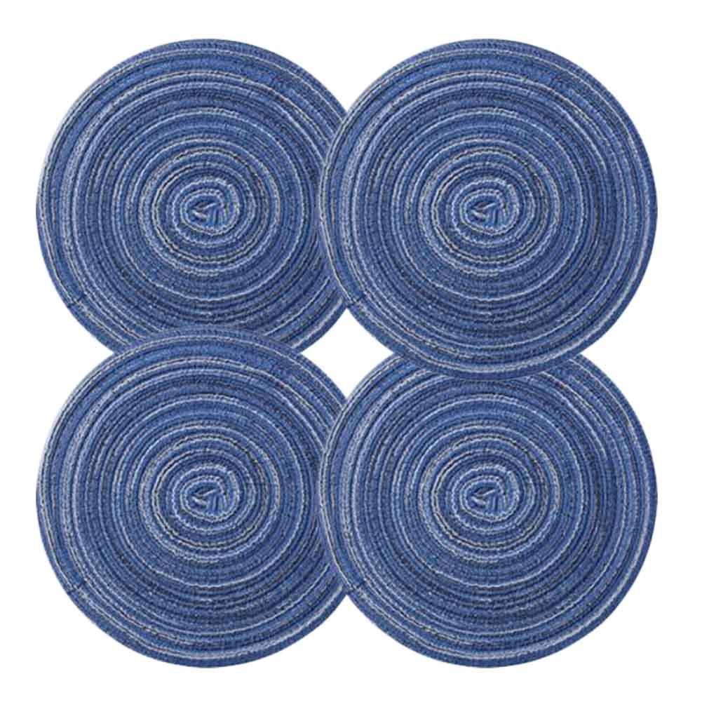 Home > 4 Pcs Woven Ramie Placemats Round Placemat Kitchen Accessories Home Decoration Table Mats Teapot Mats 7 inch, Blue