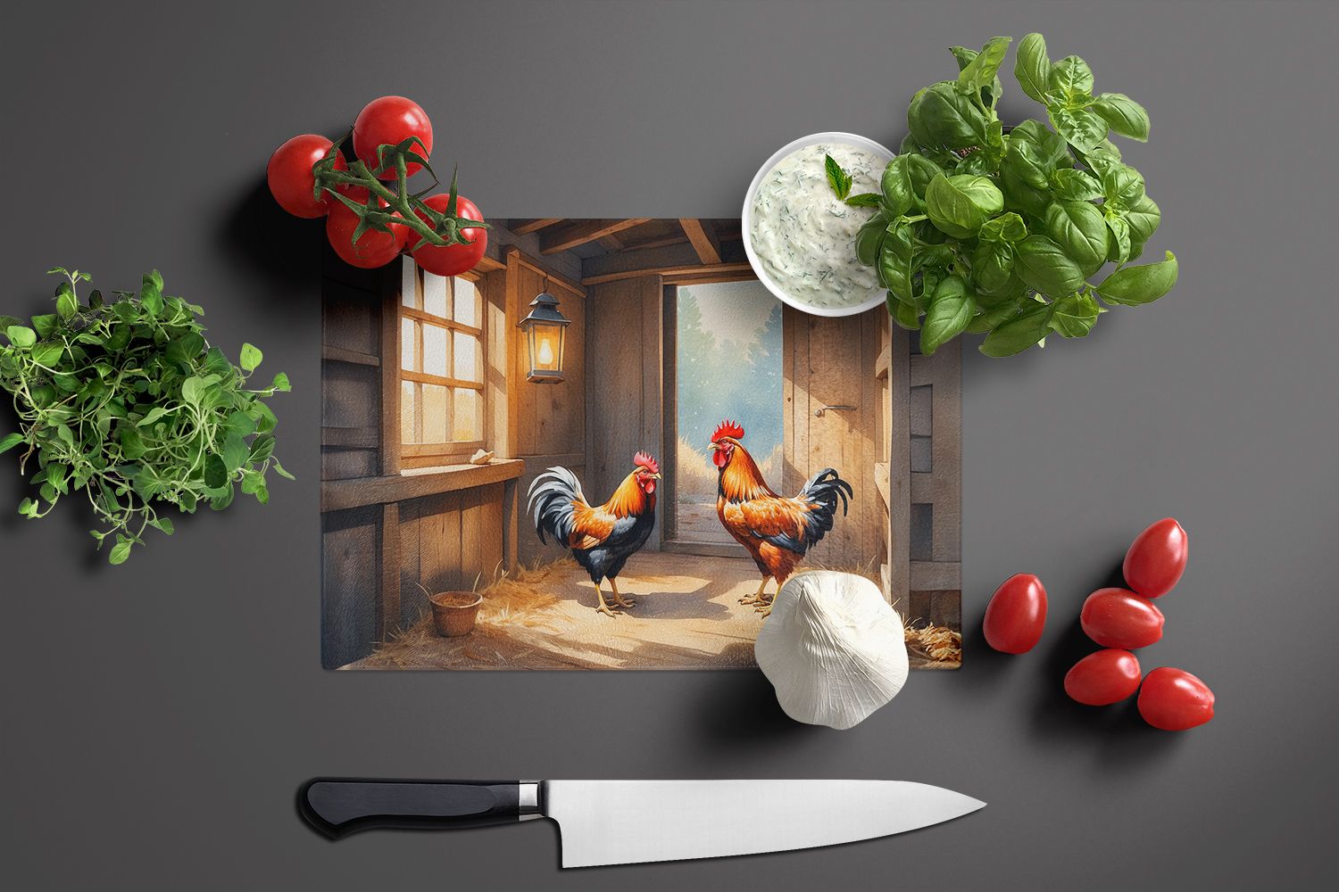 Chickens in the Coop Glass Cutting Board Decorative Tempered Glass Kitchen Cutting and Serving Board Large Size Chopping Board