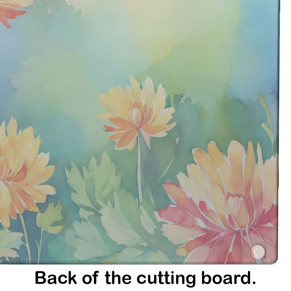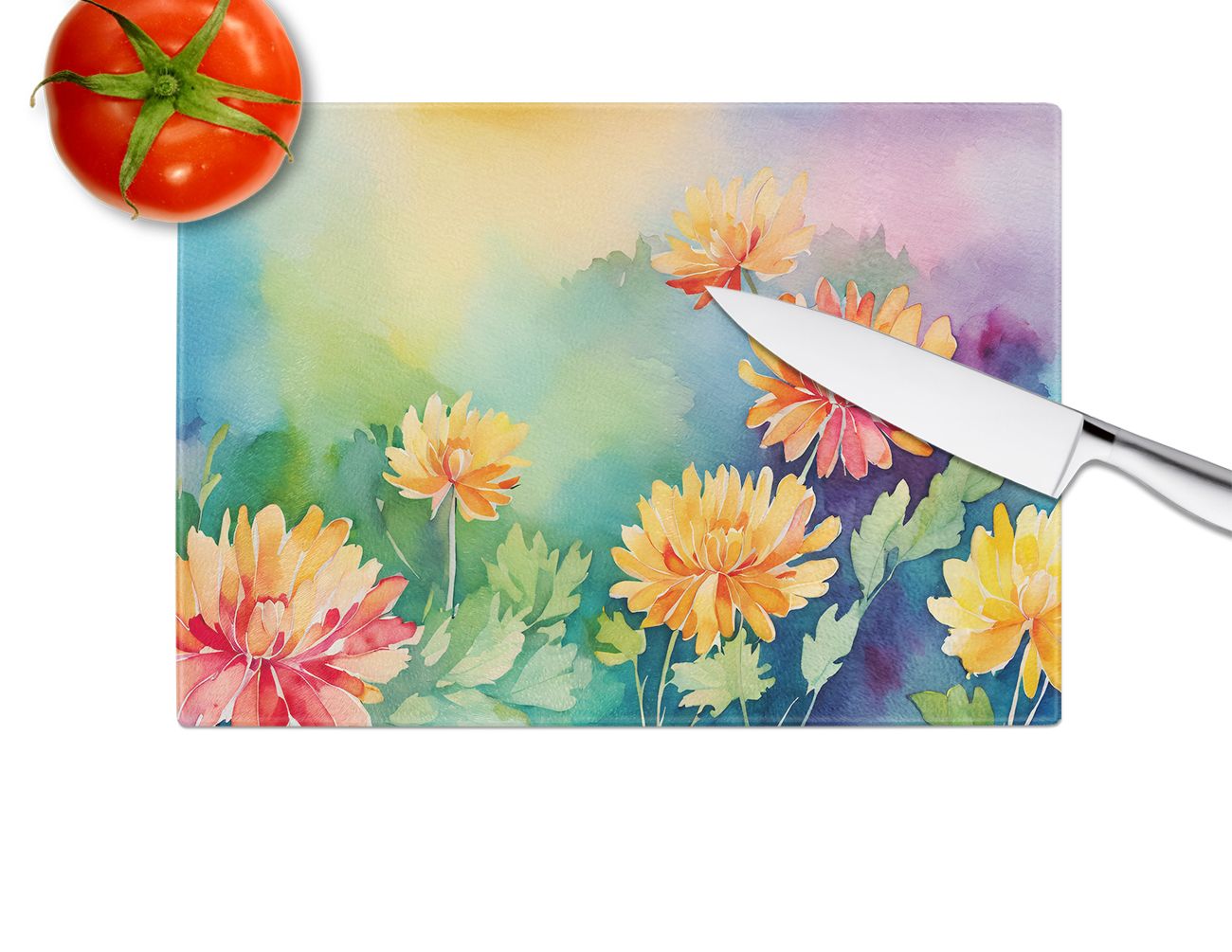 Home > NEW Chrysanthemums in Watercolor Glass Cutting Board Decorative Tempered Glass Kitchen Cutting and Serving Board Large Size Chopping Board