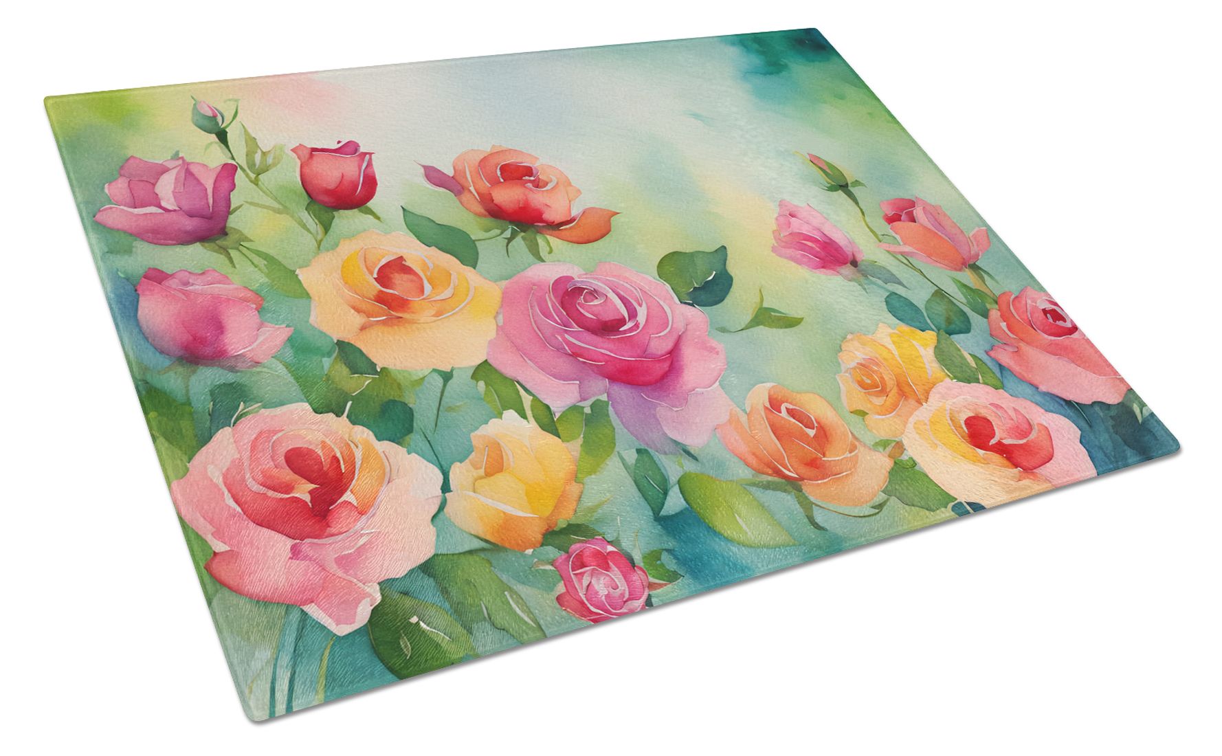 Home > NEW Roses in Watercolor Glass Cutting Board Decorative Tempered Glass Kitchen Cutting and Serving Board Large Size Chopping Board