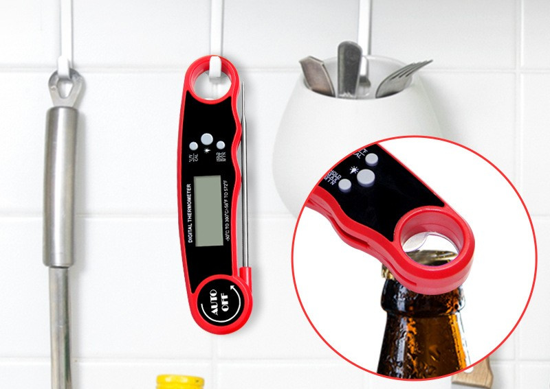 One product for two purposes - The back of the thermometer is a bottle opener; which can be used to open all kinds of beer bottle caps; soda bottle caps.