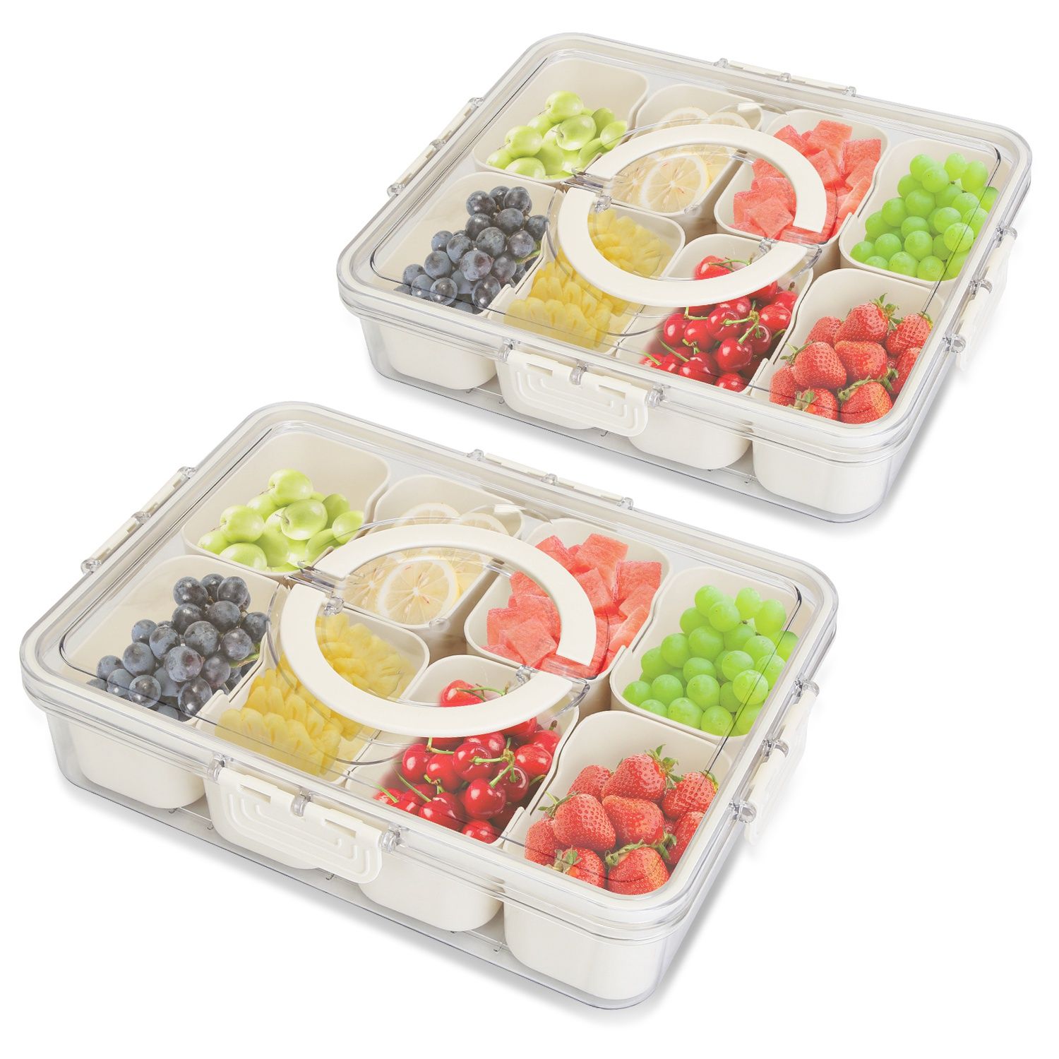 *Portable & Foldable Handles*:The collapsible handle designed on the top of the lid allows you to carry the snackle box anywhere easily. Great for parties,picnics,and entertaining. You can also put it into the refrigerator for storage.