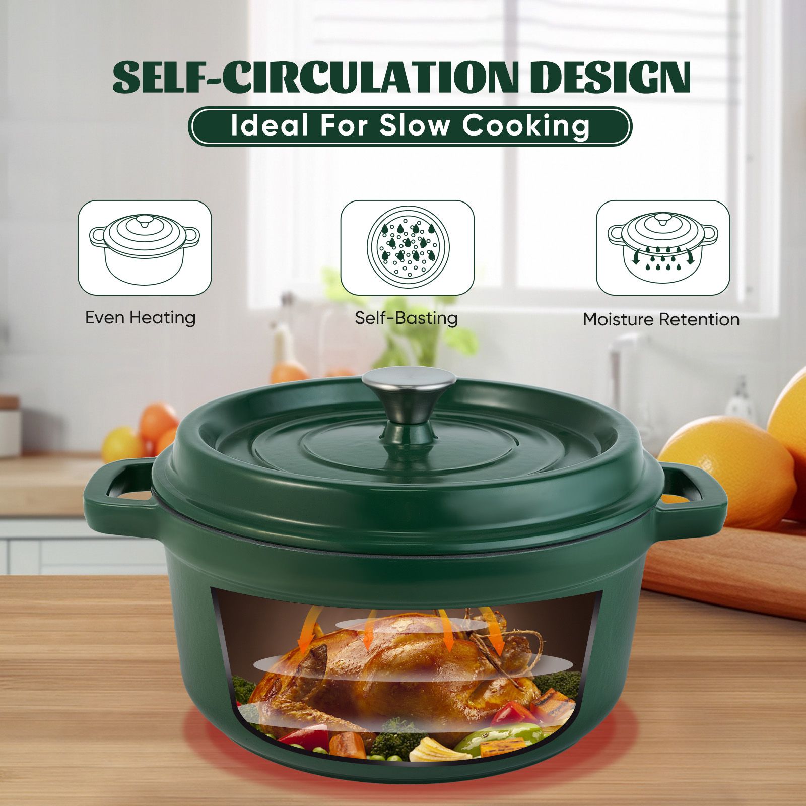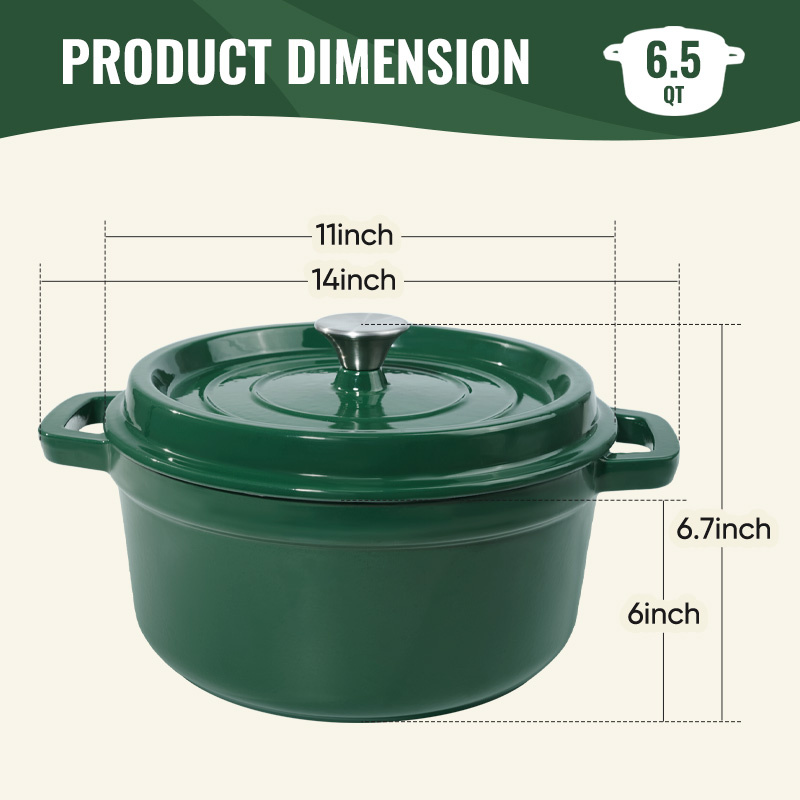 ��LARGE 6.5 QT CAPACITY:Our cast iron dutch oven can be used for multiple cooking methods such a cooking, baking, stewing etc.With this Large capacity enameled cast iron, can meet all the needs of family gatherings.The highest temperature tolerance is as high as 500°F.