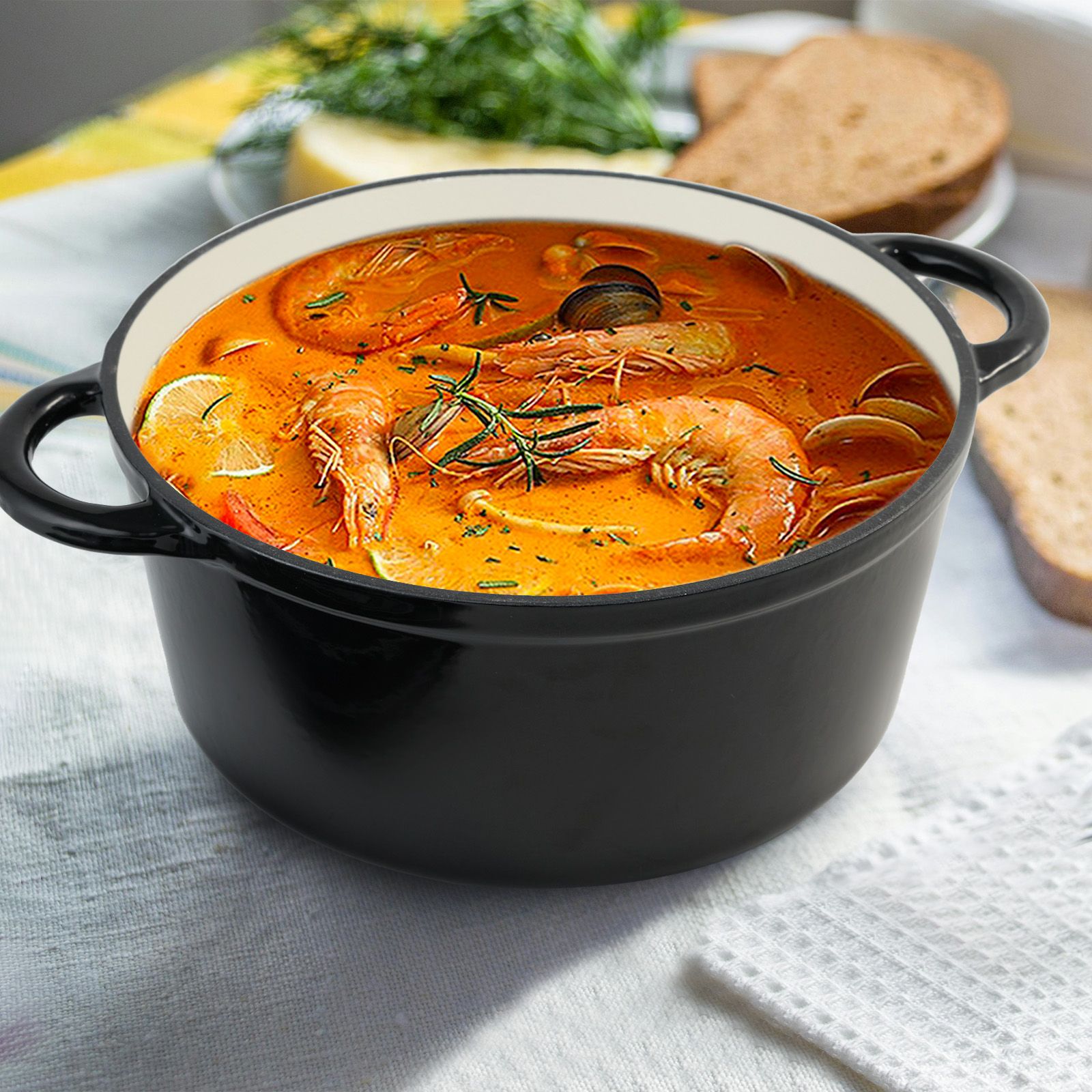 ��LARGE 6 QT CAPACITY:Our cast iron dutch oven can be used for multiple cooking methods such a cooking, baking, stewing etc.With this Large capacity enameled cast iron, can meet all the needs of family gatherings.The highest temperature tolerance is as high as 500°F.
