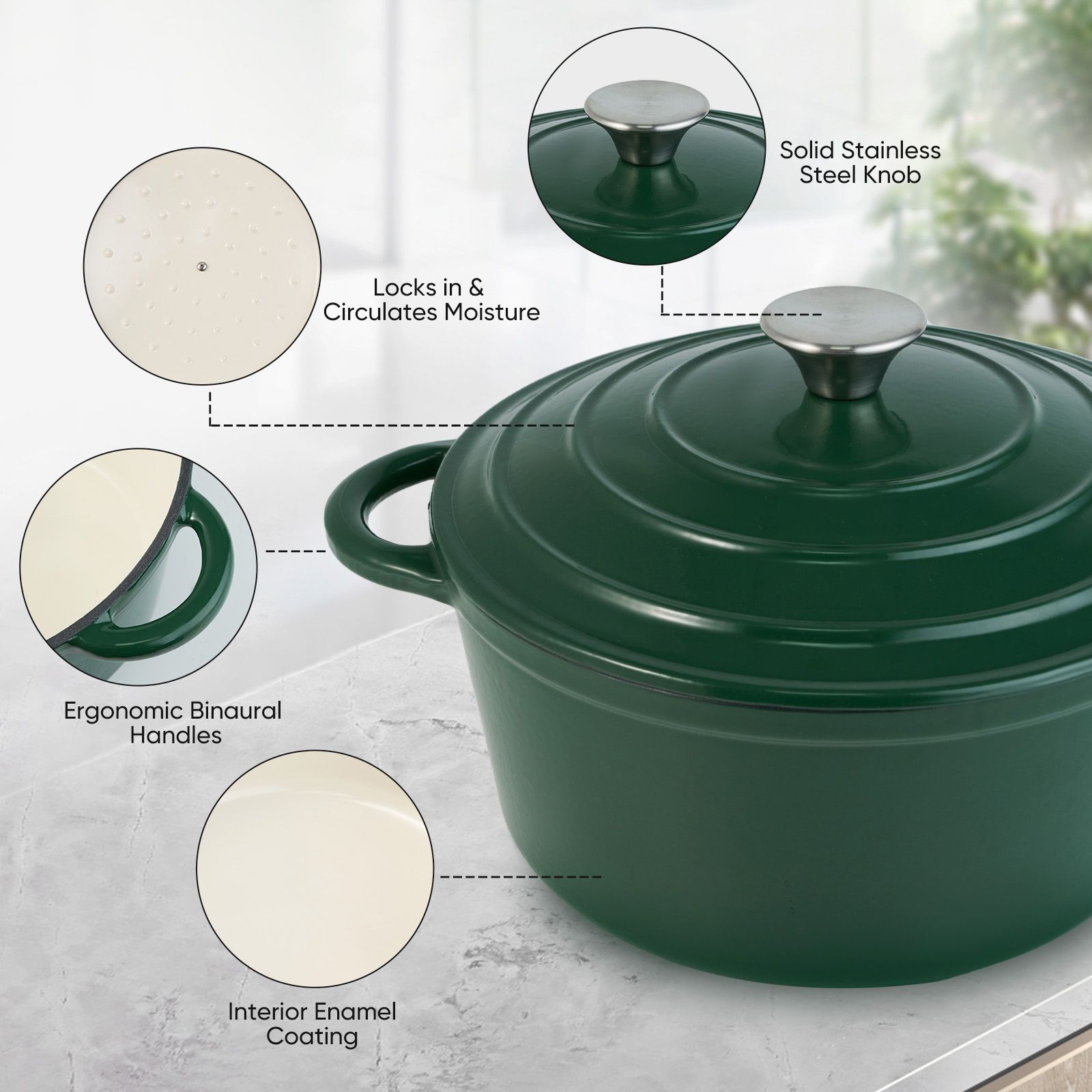 ��LARGE 6 QT CAPACITY:Our cast iron dutch oven can be used for multiple cooking methods such a cooking, baking, stewing etc.With this Large capacity enameled cast iron, can meet all the needs of family gatherings.The highest temperature tolerance is as high as 500°F.